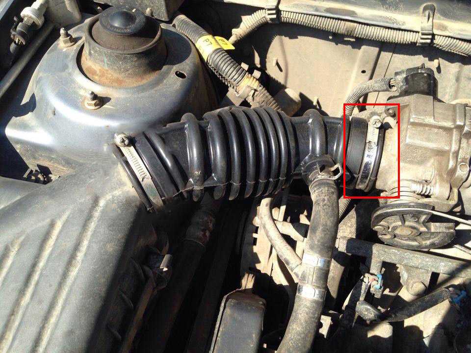 5. Ослабив хомут крепления крестовой отверткой, отсоедините воздухоподводящий рукав от патрубка дроссельного узла и отведите рукав в сторону (как снять воздухоподводящий рукав читайте в статье расположенной здесь).