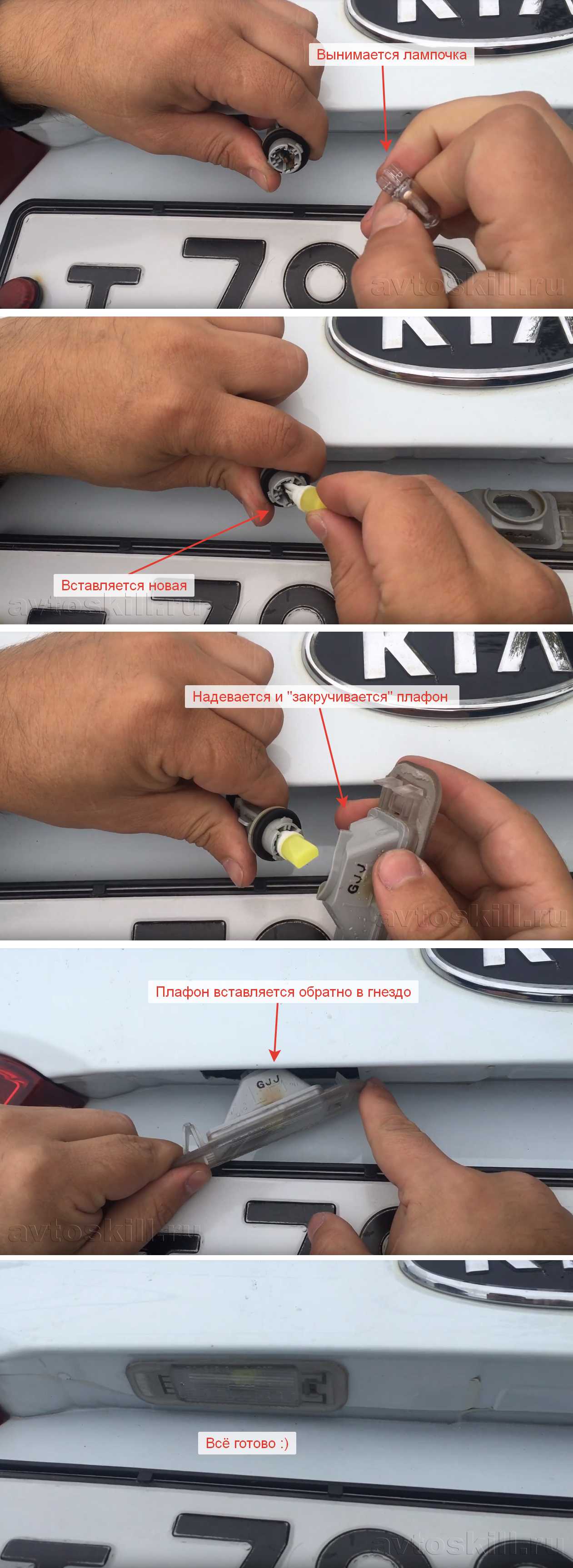 Как поменять лампочку подсветки номера: пошаговая инструкция с фото и видео