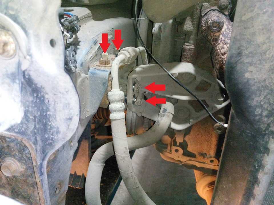4. Ключом «на 14» выверните два болта крепления опоры к кузову, один сзади и один спереди.