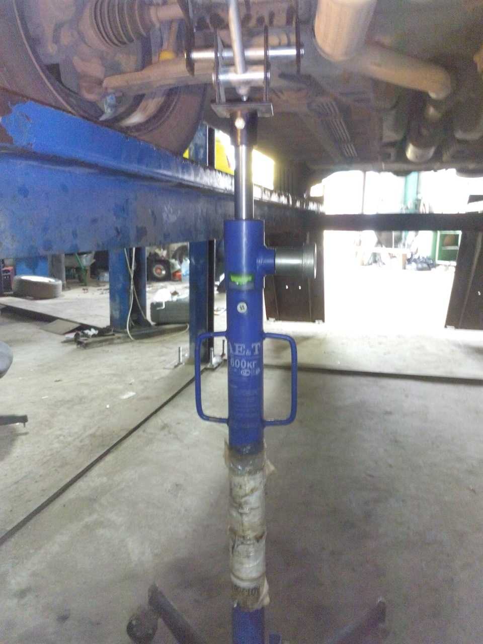 Под картер КПП необходимо поставить домкрат. Немного приподымаем КПП, чтобы можно было заменить опору.