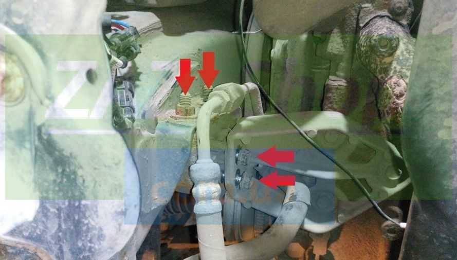 - Демонтируем кронштейн, соединяющий опору с двигателем. Кронштейн крепится 3-я болтами.