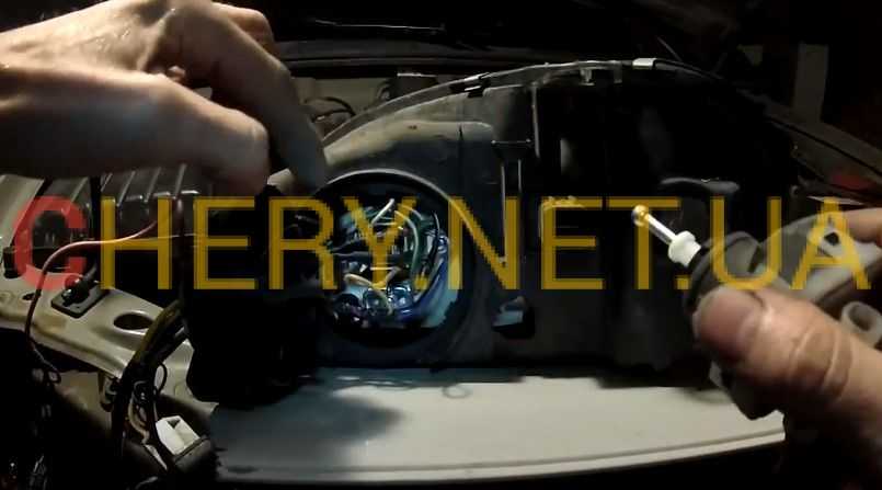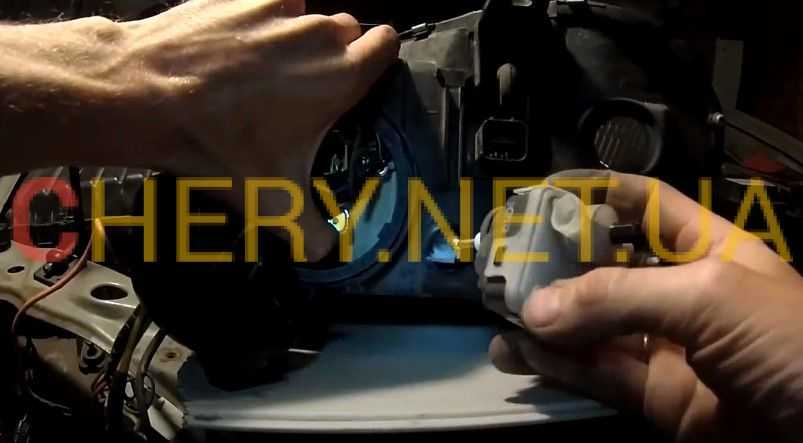 - Немного отодвигаем отражатель фары Дэу Ланос.