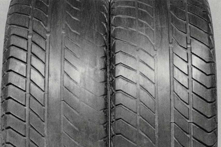 Как это выглядит. При этом виде износа покрышек, как правило сильнее всего изношен протектор посередине покрышки (пример на фото).