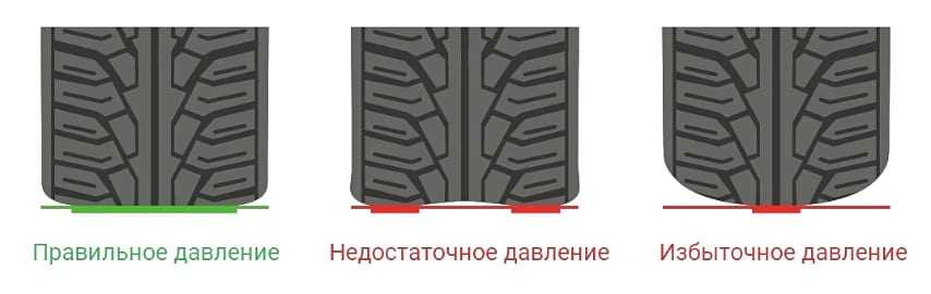 Он свидетельствует о том, что автомобиль ездит на перекачанных колесах. Так как из-за повышенного давления резина стала жестче, то колесо сцепляется с дорогой только центральной частью.