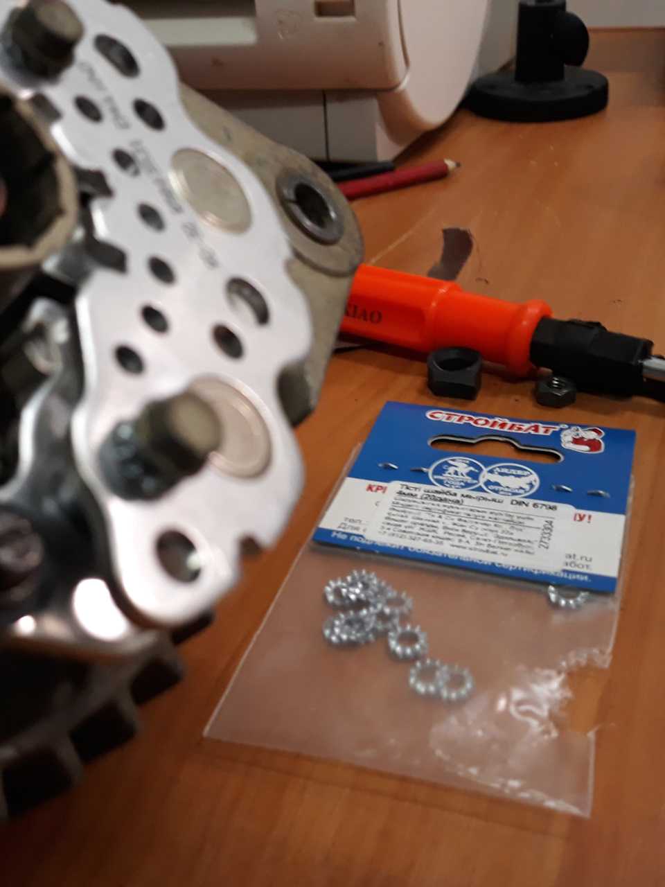 При сборке под болты крепления диодного моста и минусовой клеммы реле регулятора подложил «зубастые» шайбы.