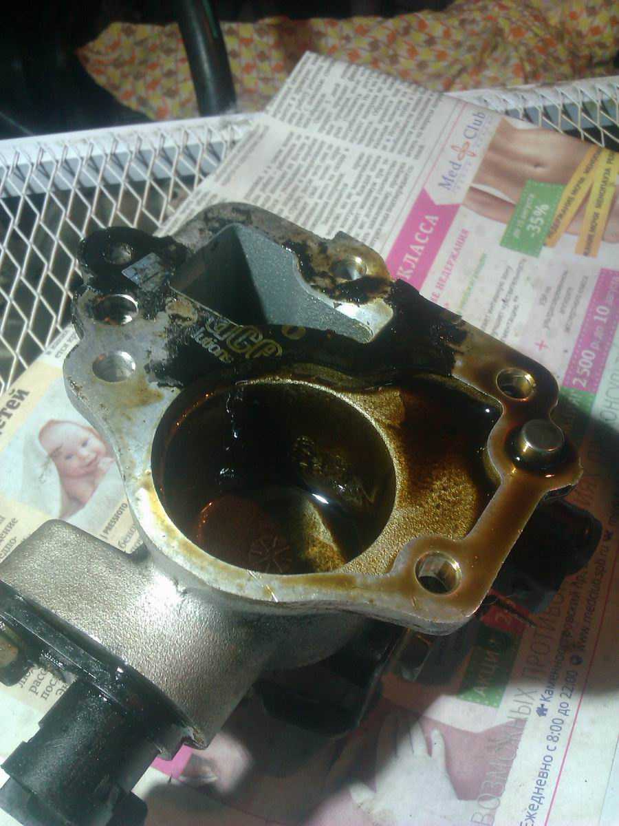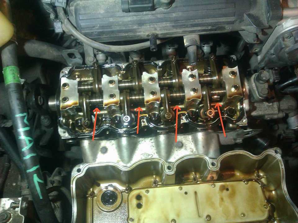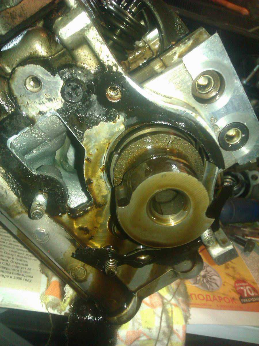 Снял клапанную крышку. При регулировке клапанов, которую я делал полтора года назад. Тогда я заменил болты с внутренним шестигранником, на обычные, чему теперь очень рад. Крутить их головкой на 10 гораздо легче, чем шестигранной биткой на 5 мм. Вот Дроссель тоже крепится снизу на двух болтиках с таким внутренним шестигранником. И сейчас я смог открутить лишь один…Крышка и мотор всё того же приятного чистого цвета. Масло Тотал, если что.Под распредвалом есть 4 некие «емкости» для масла. В него опускаются кулачки при работе. Вот там на дне под распредвалом стоят стальные заглушки, которые имеют обыкновение ржаветь, таких записей полно. Тогда антифриз попадает в масло.Но толком оценить их состояние можно только сняв все валы и РВ. Хотя это вопрос, если у вас в картере эмульсия уже. Чего у меня нет. ))