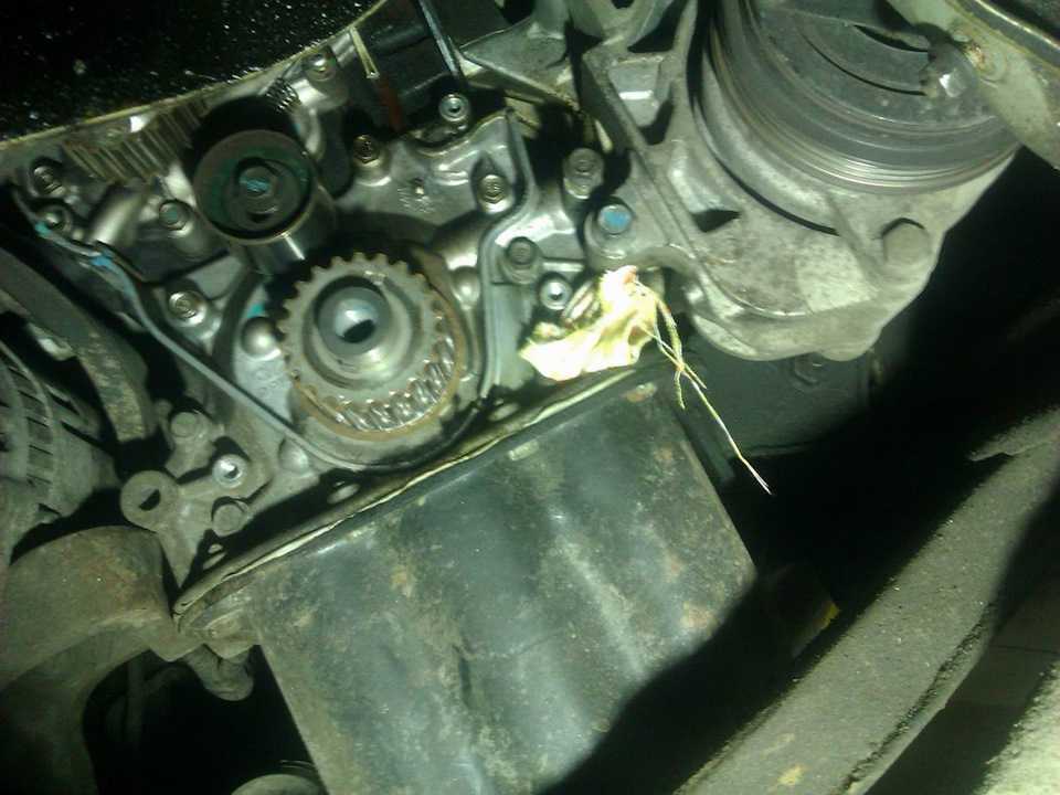 Пришлось откручивать колесо, срывать гайку распредвала, с помощью лючка для его блокировки. С помощью тормозов он не срывался.