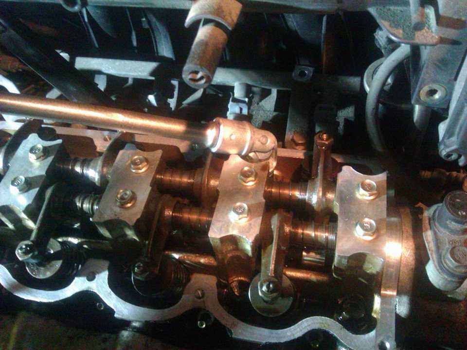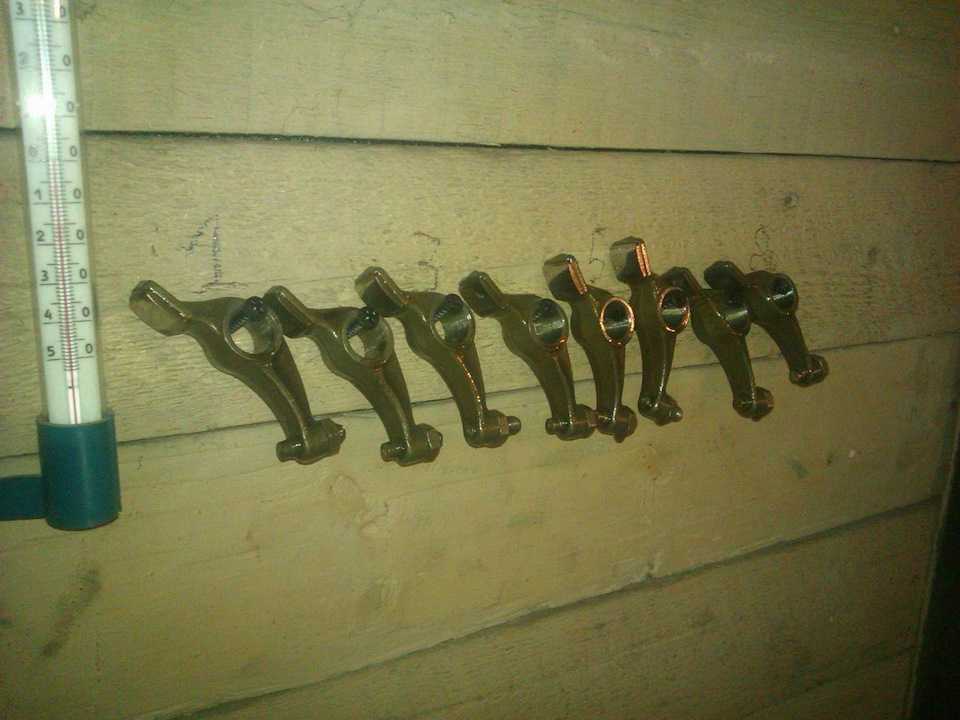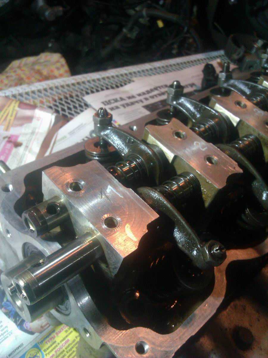 Потом, когда и это не помогло, до меня дошло. Надо ослабить клапаны, чтобы они не давили на коромысла.Выкрутив регулировку, я добился, чтобы клапаны все закрылись и появился зазор. и легко, руками вытащил обе оси коромысел.