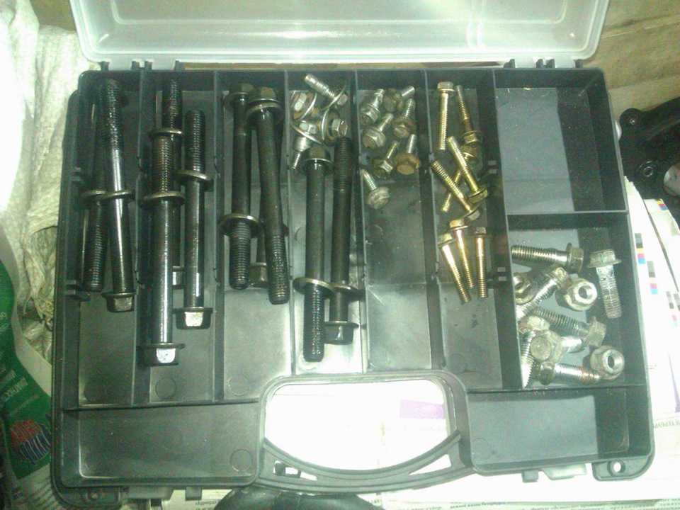 Т.к. что-то не всё выложил сразу, дополню разборку головы еще постом.При разборке всего и снятии головки блока болты и гайки складывал по ячейкам, чтобы потом хоть как-то иметь представление откуда они. )) Некоторые закручивал обратно. Чтобы уж точно.