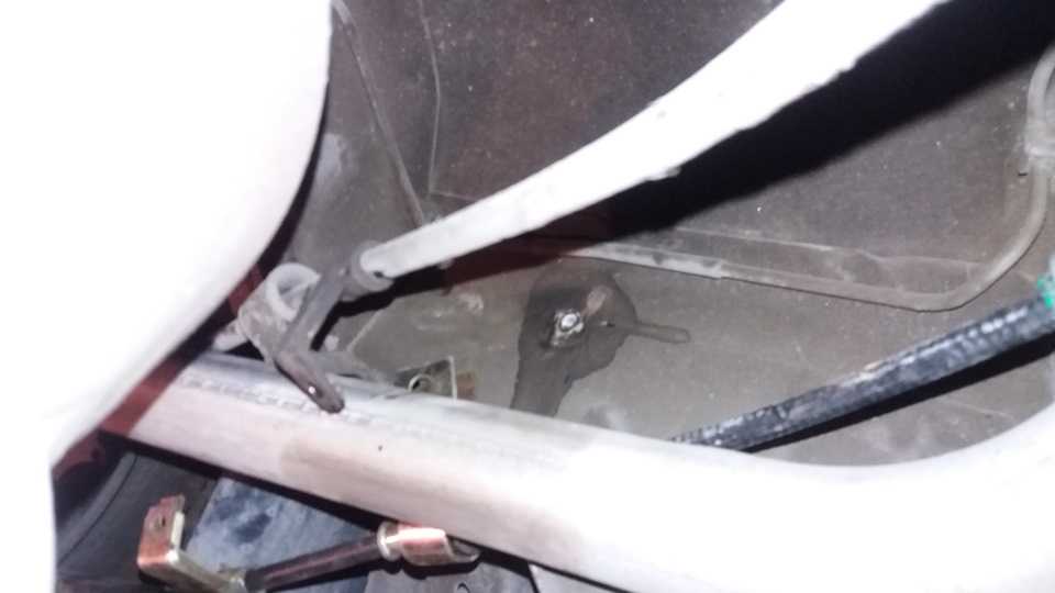 Заранее все соединения обработал wd-40 и на следующий день все довольно легко открутилось. Бак опустил на доску скирпичами т.к. длина топливных трубок позволяет совершить сей маневр.Далее откручиваем ключем или головкой болты крепления троса. Из 6 шт один скрутил. Места не самые удобные для обычной дрели.