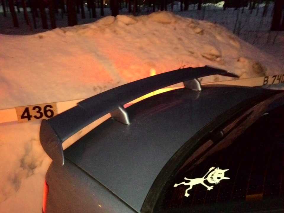 Привет всем. не давно делал запись что уперся в сугроб и треснула юбка банпера переднего, так вот трещены на юбке спомощи паяльника запоял. Естественно место пояния было затерто наждачкай, а что бы терялась и для освижения вида и так как элероны черные решил покрасить в черный.Еще перекрасил накладки птф обратно полностью в черный и занова переклеил защитные стеклышки.Наконе что поставил спойлер и подключил его стоп сигнал. Сигнал запитал от заднего салонного стоп сигнала, провода акуратно убрал. Еще немного подкрасил задний бампер в черный, не раз видел записи что подкрашивали, вот и я решил обновить. И решил что в сочитание со спойлером будит отлично. стоимость элеронов и спойлера с доставкой вышла 5.000-6.000 тыщ рублей, где то в этом промежутке.