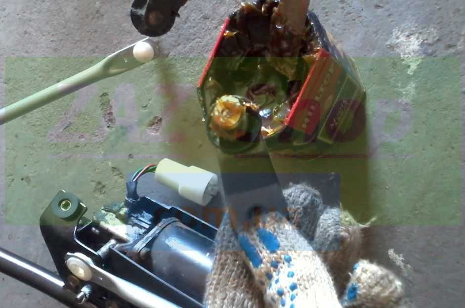 Ставим мотор на новую трапецию. При подсоединении тяг к приводному валу мотора крайне желательно добавить смазки в шарнир. Некоторые трапеции уже имеют смазку в подвижных сочленениях, но специалисты придерживаются мнения, что объема заводской смазки во многом недостаточно. В роли смазки необходимо использовать что-то термостойкое, чтобы средство не вязло на морозе.